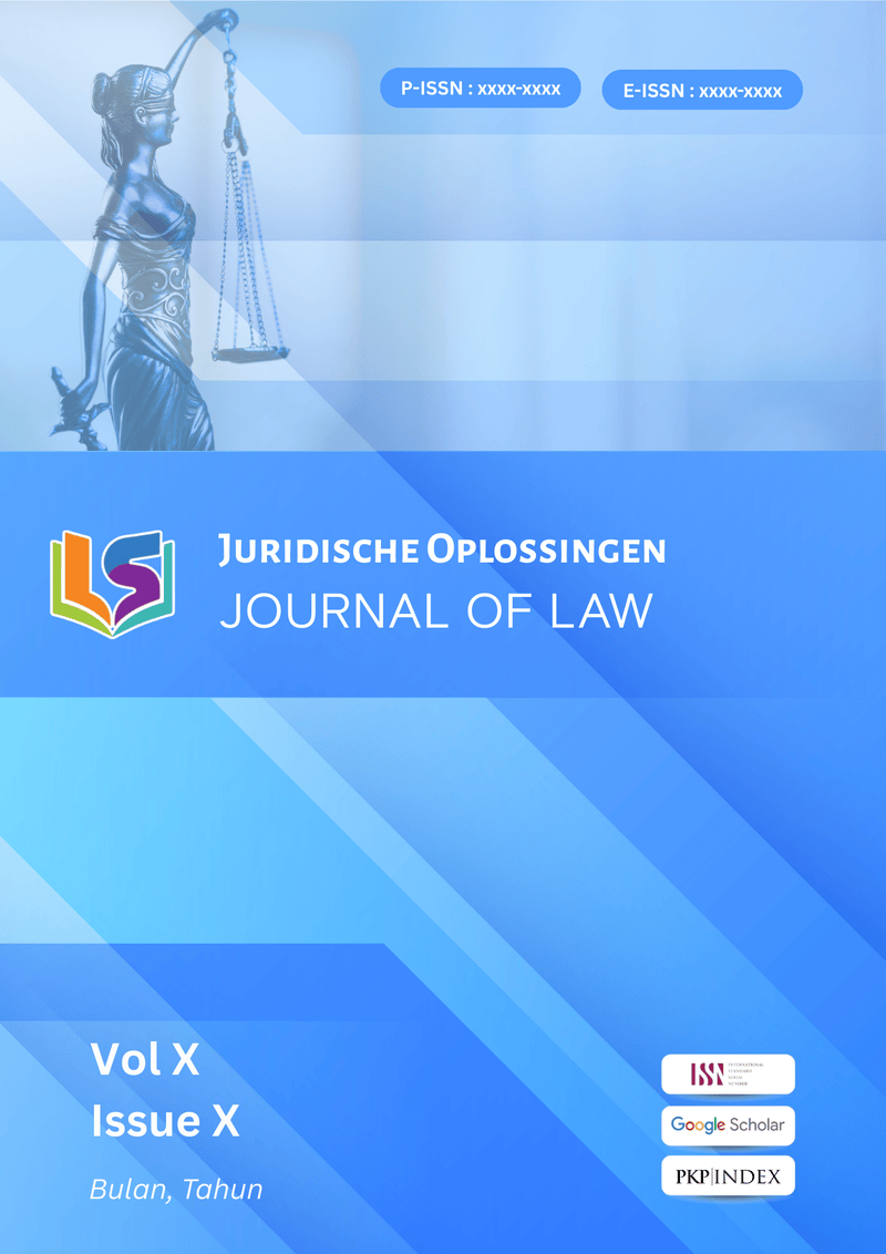 Juridische Oplossingen: Journal of Law is a peer-reviewed and open-access academic journal dedicated to advancing scholarly discussion in the field of law with a particular emphasis on ethical perspectives. The journal serves as an academic platform for researchers, legal scholars, practitioners, and policymakers to explore contemporary legal issues and normative challenges in both domestic and international contexts.